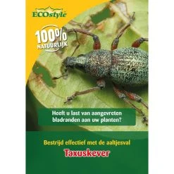 Hapjes uit de bladeren van je azalea, camelia, fuchsia, hedera, liguster, rododendron of taxus? Dan plaagt de taxuskever waarschijnlijk je tuin. Met de taxuskeverval waar de aaltjes inzitten, bestrijd je ze natuurlijk en succesvol.