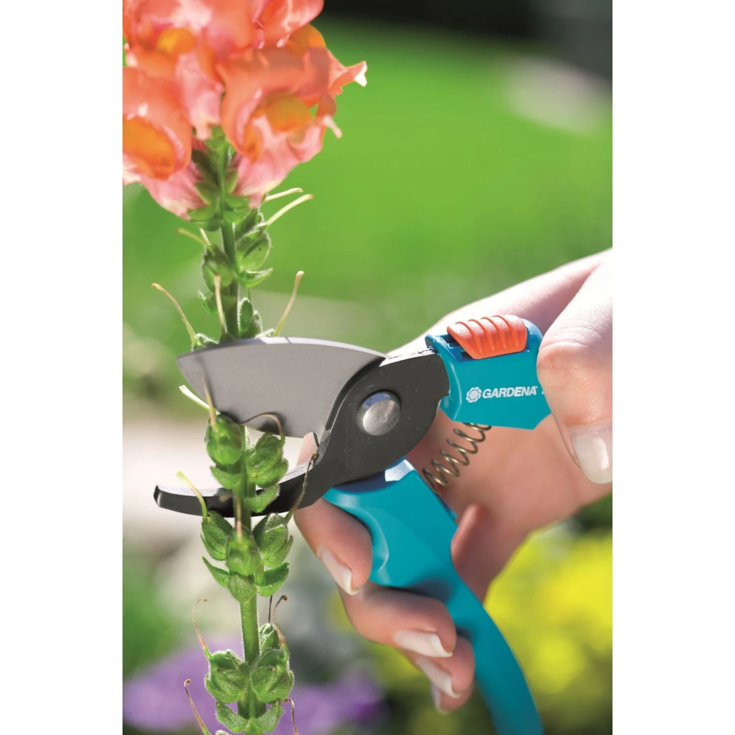 De GARDENA Classic snoeischaar is de klassieker onder de snoeischaren – met alle eigenschappen van een goede snoeischaar. Deze snoeischaar is krachtig, modern en ergonomisch, en vooral geschikt voor het snoeien van bloemen en jonge scheuten. De messen van de gebogen snoeikop zijn precisiegeslepen en voorzien van een antikleefcoating. Dankzij de ergonomisch gevormde handgrepen ligt de snoeischaar optimaal in de hand. De snoeischaar heeft twee werkposities, één voor krachtsnoei en één voor snelsnoei. De snoeischaar heeft een sapgeul en een draadafsnijder. Met de enkelhandige veiligheidsvergrendeling kan de snoeischaar gemakkelijk worden vergrendeld en veilig opgeborgen. De Classic snoeischaar kan takken met een maximale diameter van 18 mm snoeien.