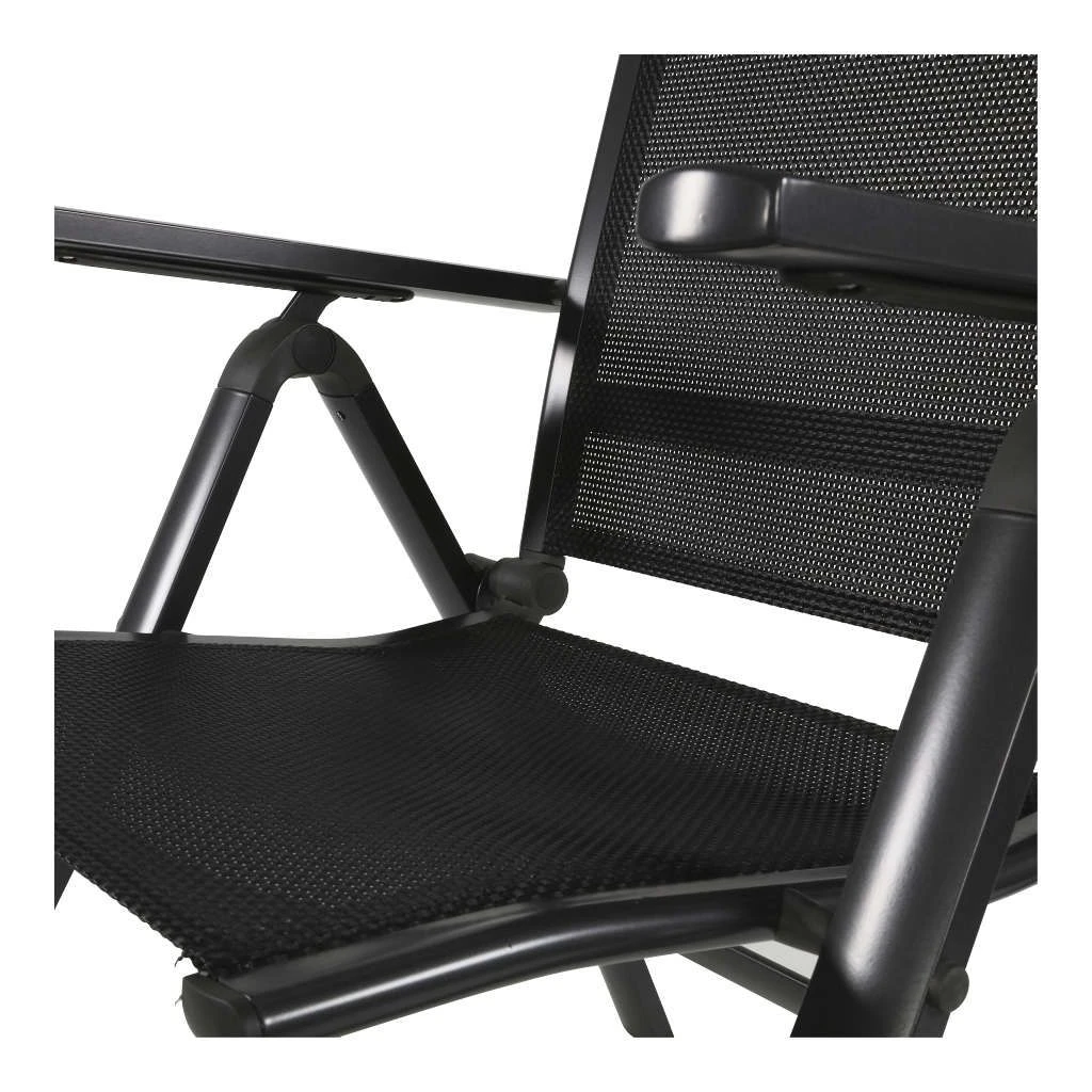 Heerlijke verstelbare tuinstoel. De standenstoel Carino is gemaakt van aluminium en zwart textileen. Door de textilene zitting zit deze stoel heerlijk, en hij is ook nog eens verstelbaar. Heerlijk na het eten stoel achterover en nagenieten van het zomers zonnetje.