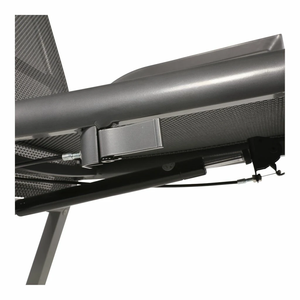 Deze heerlijke stoel heeft een Aluminium frame met een zitting en rugleuning van textileen. Hierdoor heeft deze stoel een heerlijke comfortabele zit. Deze stoel is ook nog eens verstelbaar door aan de hendel te trekken. Door deze hendel naar voren te halen gaat de rugleuning langzaam naar achter, deze leuning werkt door een gasveer.
