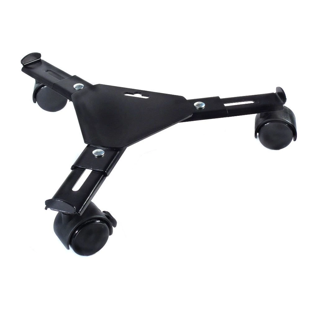 Verstelbare plantentrolley van metaal met epoxy, kleur zwart. Het plateau heeft 3 of 4 ondersteunende armen met uitschuifbare lengte om zich aan te passen aan elke wenste pot. Elke uiteinde van de arm is verhoogd om de pot op zijn plaats te houden. Wieltjes van PP met een diameter van 40 mm, met rem(men) op elke steun. Maximale belasting 75 a 100 kg.