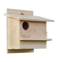 Helaas verdwijnen er steeds meer leefgebieden voor de eekhoorns. Hang dit eekhoorn woonhuis op in de tuin om ze een veilig onderkomen te geven. Het eekhoorn woonhuis is gemaakt van vurenhout en gelakt met blanke lak op waterbasis. Het eekhoorn woonhuis heeft twee in- en uitgangen, zodat de eekhoorn weg kan vluchten als dat nodig is.Â