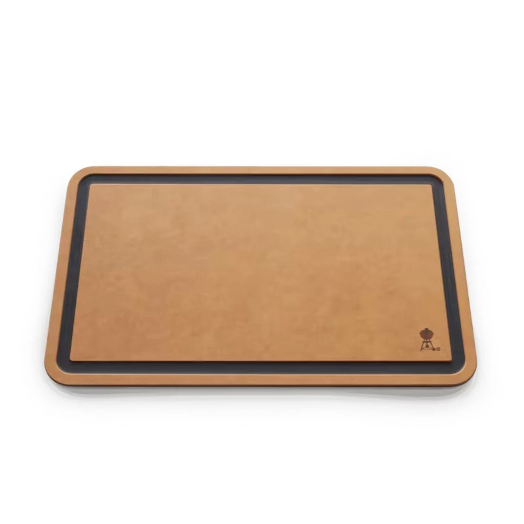 Het gegroefde design van de snijplank vangt vleessappen op tijdens het snijden. De plank heeft het perfecte formaat voor snijden en serveren op het werkblad van je Weber-barbecue.